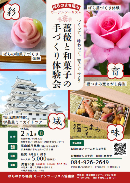 【催行決定】ばらのまち福山 ガーデンツーリズム特別企画 「つくって、味わって、育ててみよう 薔薇と和菓子の手づくり体験会」参加者募集更新:2025年12月19日